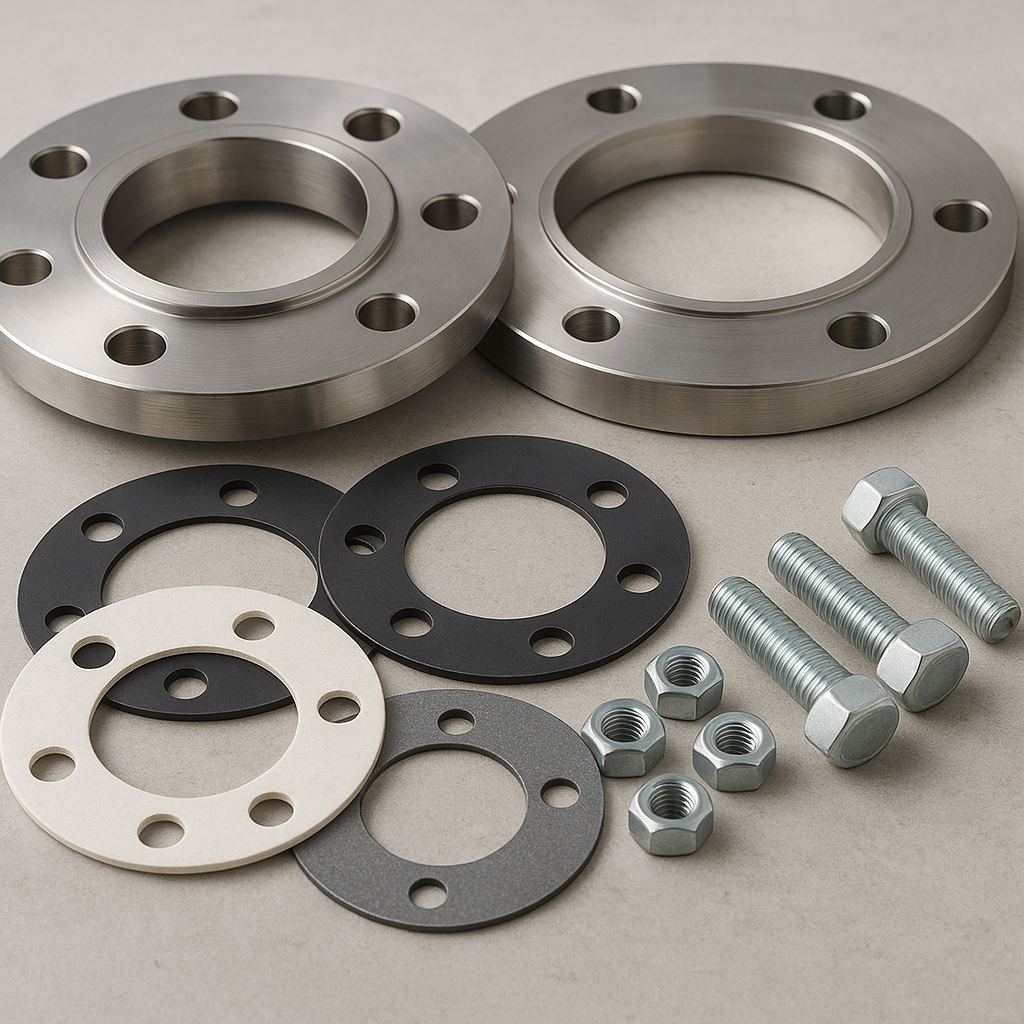Elementy składowe: kołnierze, śruby, uszczelki