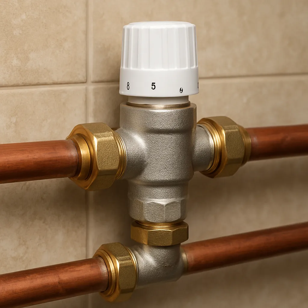 Zawory mieszające termostatyczne to urządzenia, które automatycznie łączą ciepłą i zimną wodę, utrzymując wybraną temperaturę na wyjściu. Dzięki nim można uniknąć nagłych skoków temperatury, które stanowią zagrożenie dla użytkowników, w szczególności dla dzieci i osób starszych.
