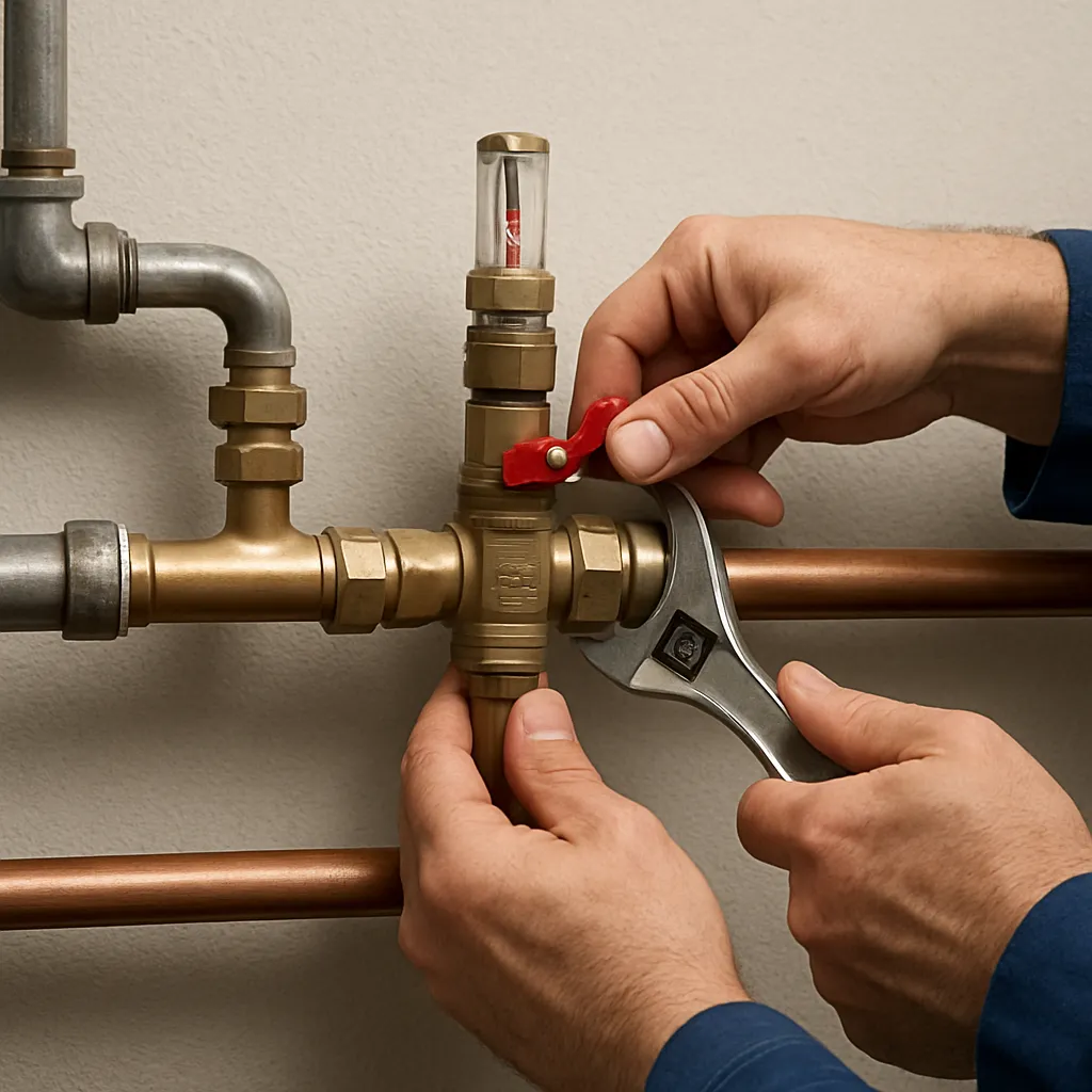 - Montaż – prawidłowe zamocowanie zaworów na przewodach z zachowaniem kierunku przepływu wg oznaczeń producenta.